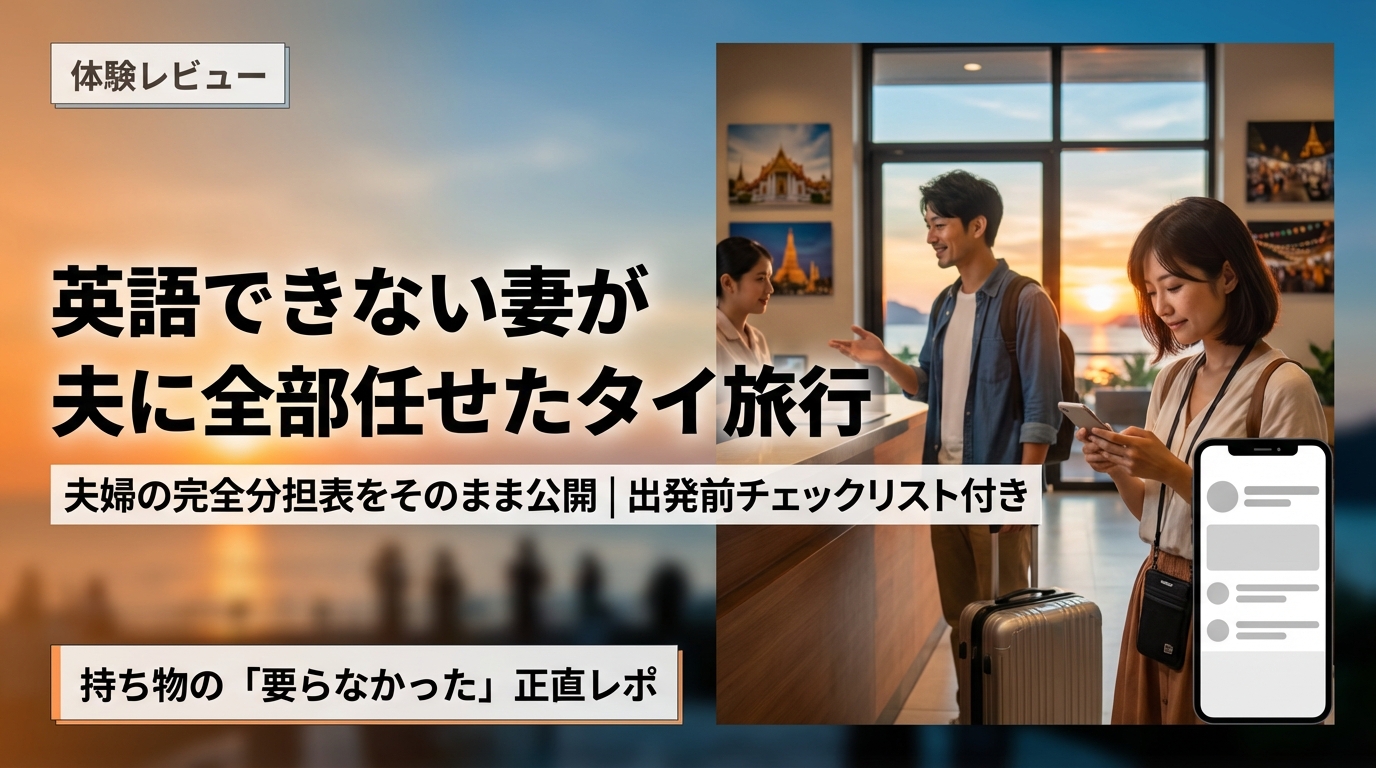 この記事では、そのリアルな「夫婦分担」を全部公開します。タイ旅行を考えているけど英語が不安、という方にとって、少しでも背中を押せれば嬉しいです。